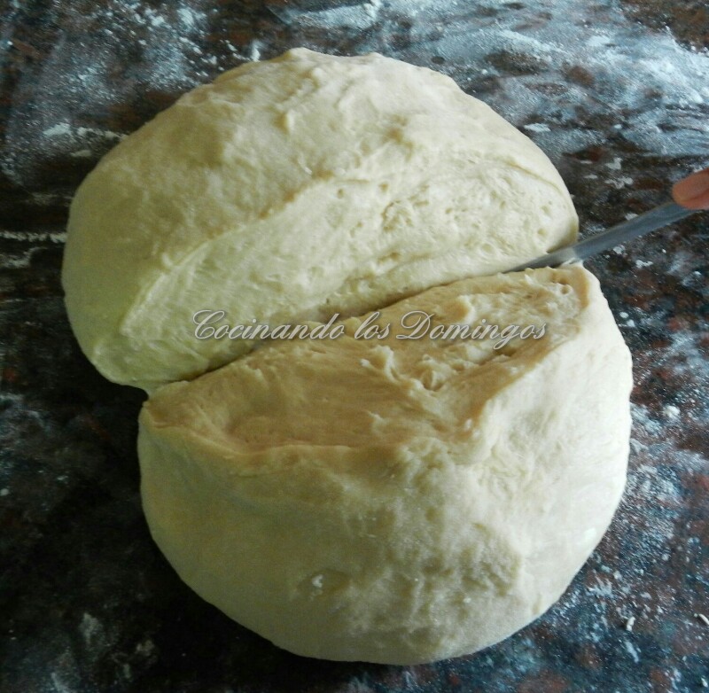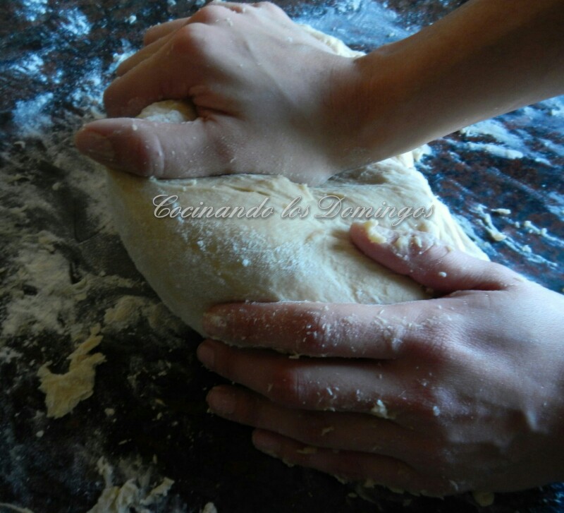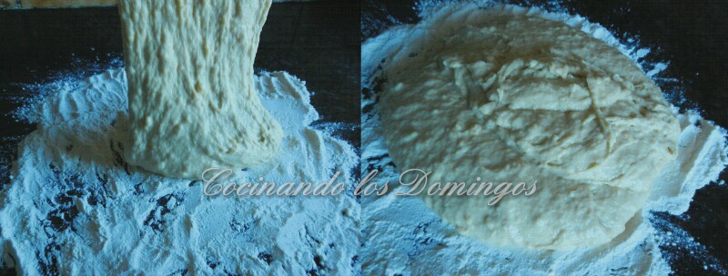 Nuevamente la ponemos sobre la mesa enharinada y amasamos un poco, siempre con ayuda de harina ya que es una masa pegajosa.