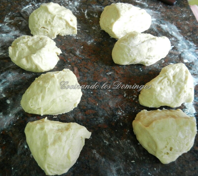 Con un cuchillo engrasado vamos partiendo la masa, primero a la mitad, después en cuartos y así continuamos hasta obtener entre 9 y 12 porciones.