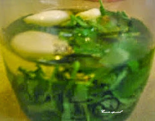 Es tiempo de comida ligera y fresca, rápida de preparar y sin demasiadas cocciones. Es tiempo de ensaladas. Hace unos días hicimos unas papas arrugás con sus mojos y nos quedó un botecito de mojo de cilantro. Es muy fácil de hacer y podéis ver la receta para confeccionarlo pinchando en el “Mojo de Cilantro” de la lista de ingredientes. Nunca se nos había ocurrido ponerlo en una ensalad ...