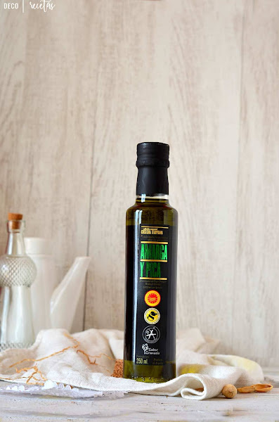 En esta receta utilizo el aceite virgen extra "Amarga y pica" de la caja mensual "Degustabox*". Aceite premium de categoría superior obtenido de aceitunas de cosecha temprana y con procedimientos mecánicos.