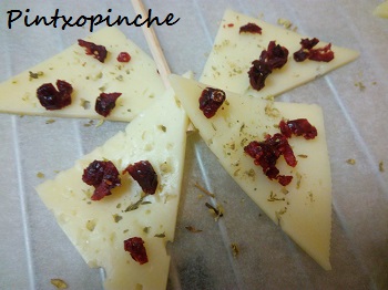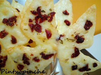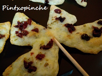 3. Picamos un puñado e arándanos, aunque podemos usar jamón serrano, chorizo, semillas, frutos secos y especias. En esta ocasión hemos puesto los arándanos, orégano, pimienta y semillas de sésamo.
