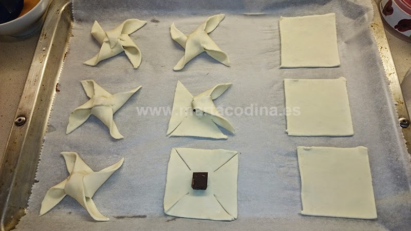 Pondremos un trozo de chocolate en el centro y juntaremos punta sí, punta no: