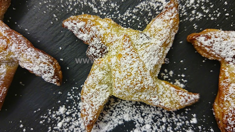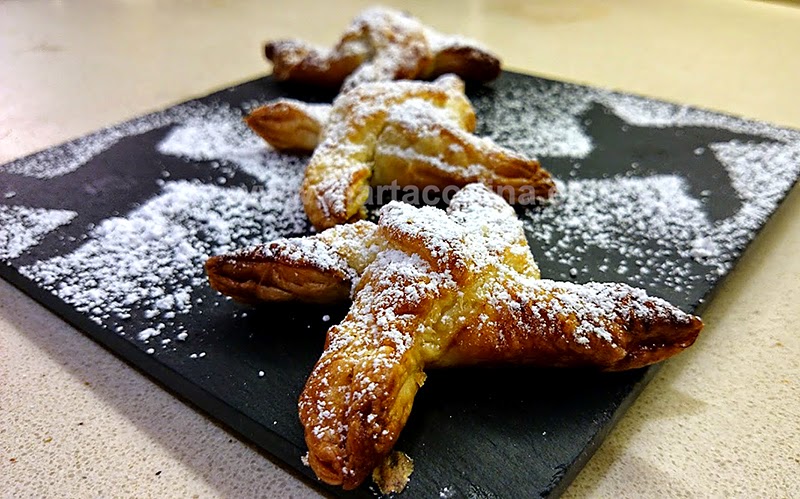 Espolvorear con azúcat lustre y ya está! Fácil, no? El centro es la clave del relleno, poned lo que más os guste...