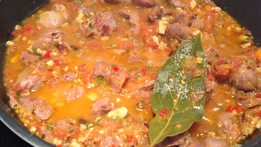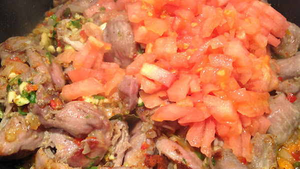Tras añadir una copa de ron añejo y dejar evaporar el alcohol, añade un tomate pelado y picado.