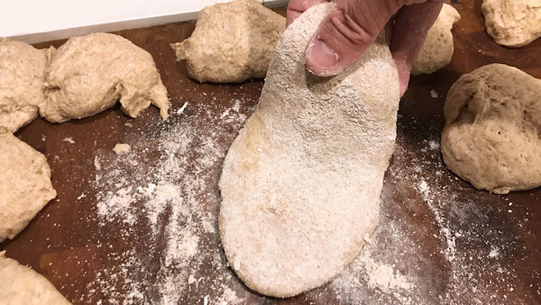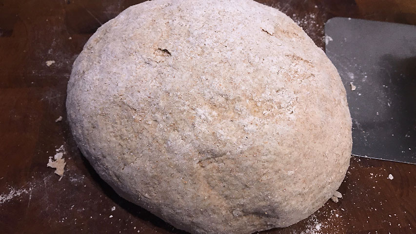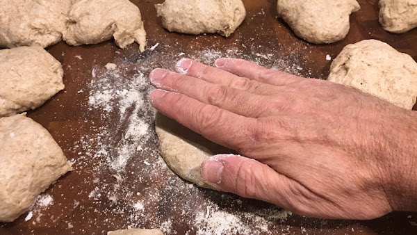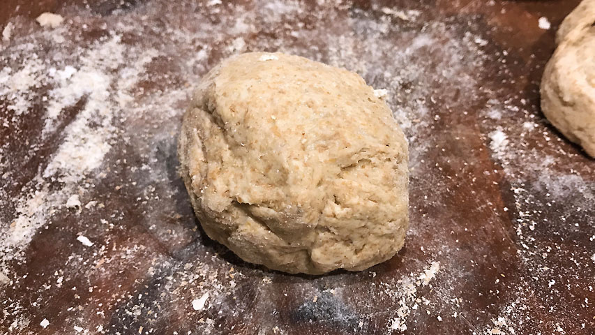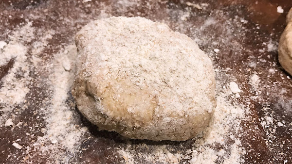 Amasa hasta hacer una bola uniforme sin preocuparte si te sobra un poco de harina.