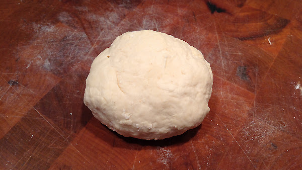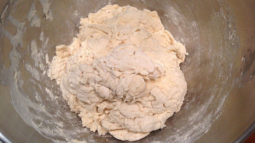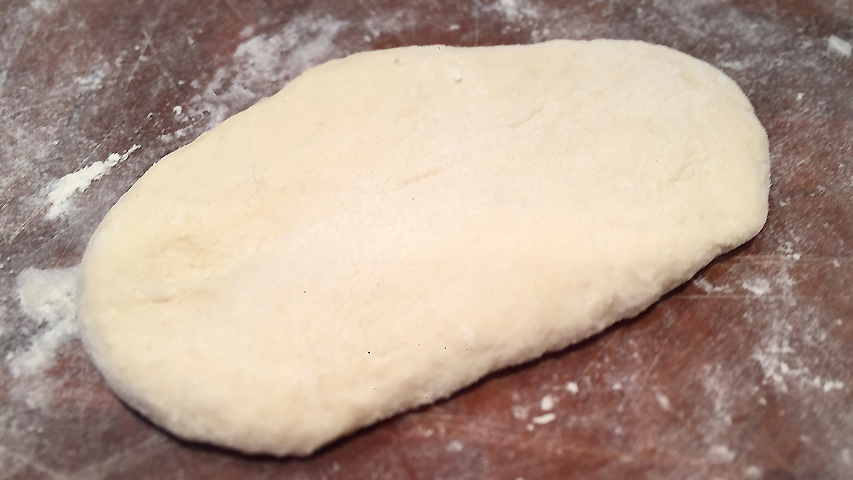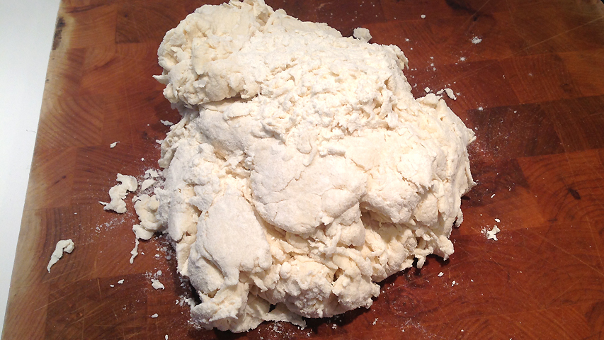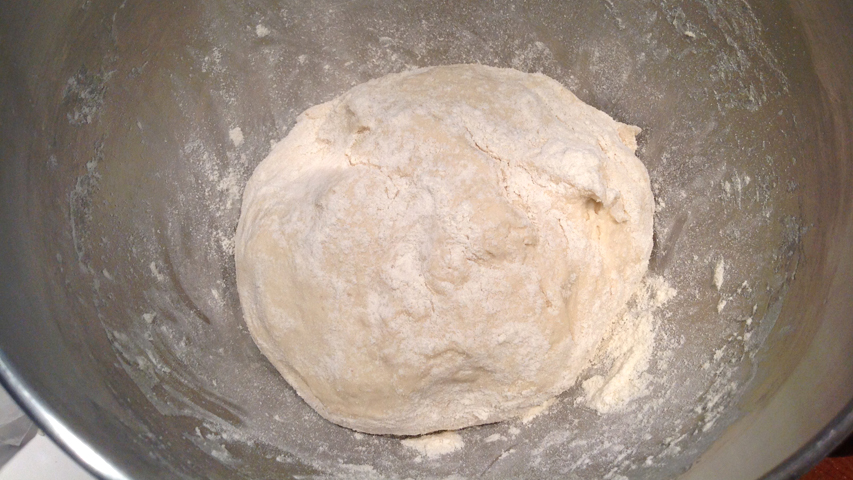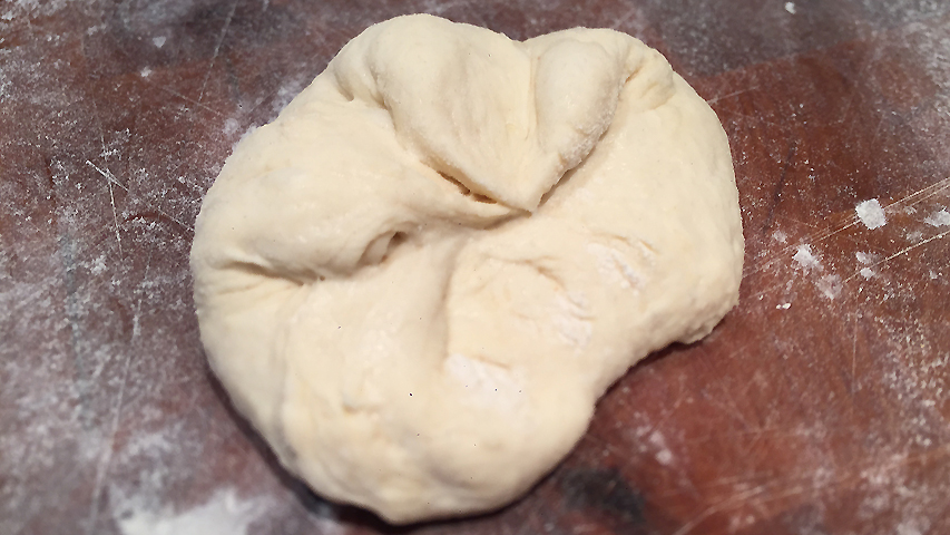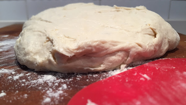 La masa sobre la tabla antes de dividirla en porciones.