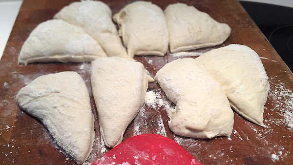 Divide la masa en dos, estas dos en cuatro y estas cuatro en ocho. Lo normal suelen ser trozos de masa de unos 100 - 3,5 onzas- gramos pero en realidad el tamaño lo decides tú.