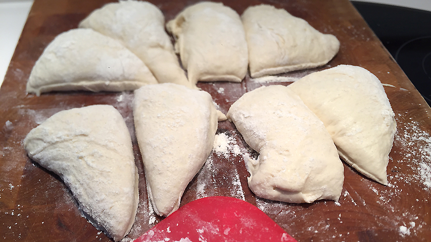 Cada porción de masa se dobla hacia dentro varias veces.