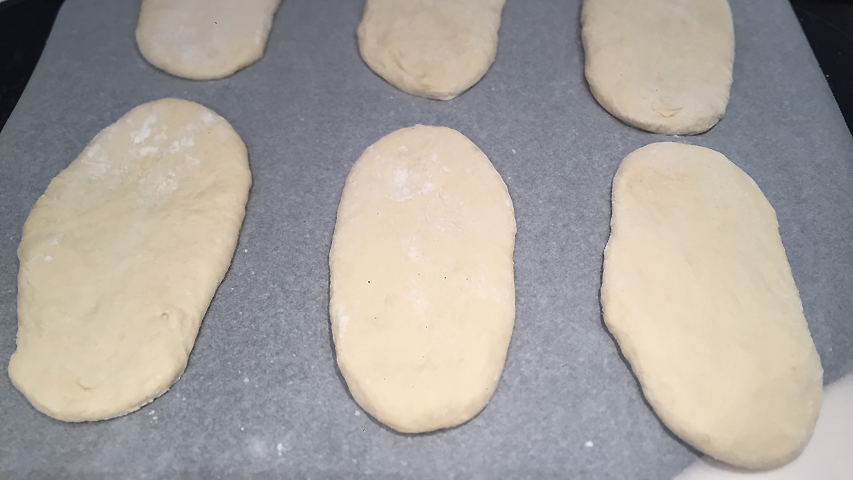 Después hay que aplanar cada bola y estirarla. Deben tener forma aplanada y ovalada.