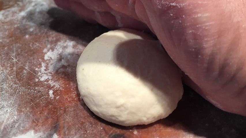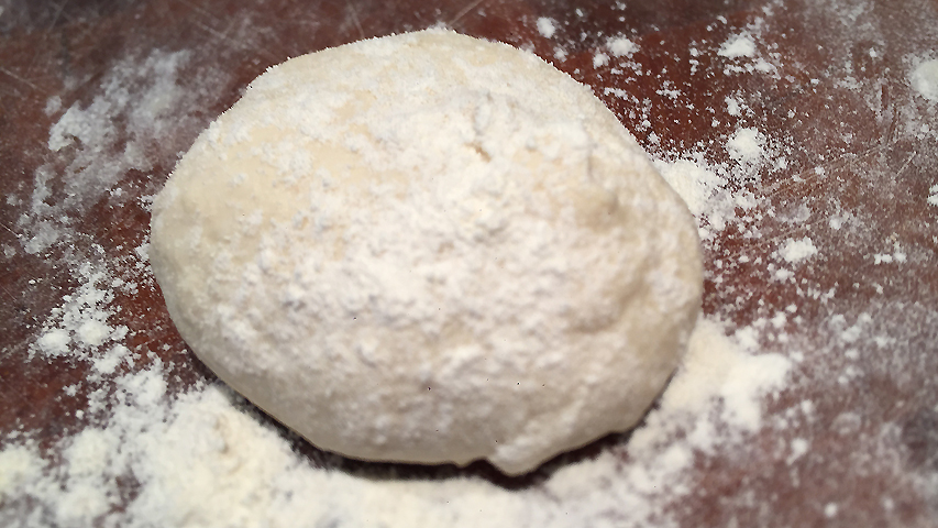 Una vez hecha una bolita se le da la vuelta y se espolvorea de harina por ambos lados.