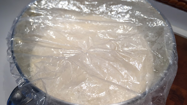 Ya ha estado la masa fermentando dos horas. Es el momento de dejar que repose en la nevera hasta otro día.