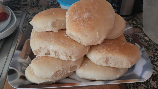 6.- Espolvorea los molletes con un poco de harina, baja la temperatura del horno a 180°C y hornea cada bandeja durante 15 minutos (los molletes no deben dorarse). Retira del horno y deja enfriar sobre una rejilla (aprox. 30 minutos). Puedes consumirlos inmediatamente o congelarlos.