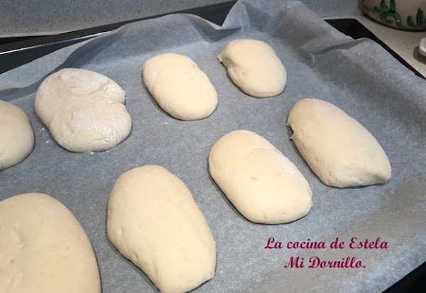 Cuando la masa haya doblado su volumen , con la encimera enharinada hacemos un rulo largo de dividiremos en porciones iguales. (Unas 12 salen, depende del tamaño)