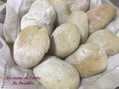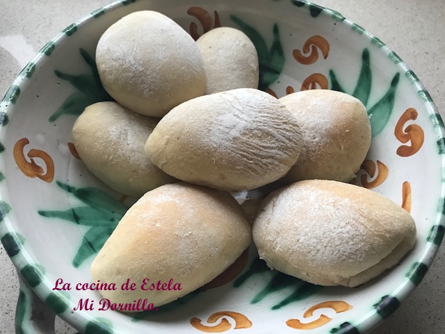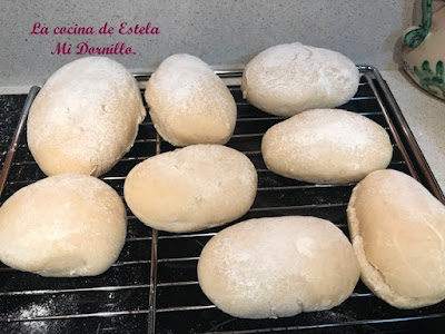 Espolvorear cada mollete con un poco de harina. Tapamos con un paño y dejamos que vuelvan a levar. *Calentar el horno a 200 º arriba y abajo. Cuando los molletes haya doblado su volumen metemos en el horno y bajamos la temperatura a 180º, dejamos unos 15 minutos , deben quedar blanquecinos. Sacamos y enfriamos sobre una rejilla.