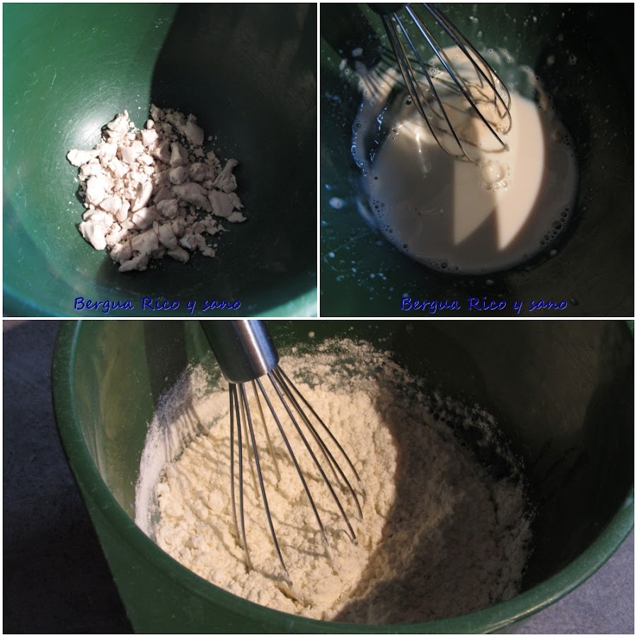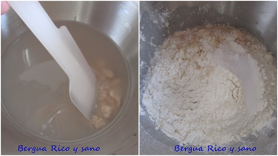 1. Disolvemos la levadura en agua tibia (nunca caliente).