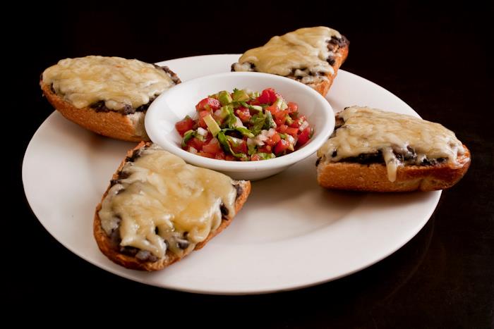 MOLLETES DE FRIJOLES CON QUESO Y JAMON