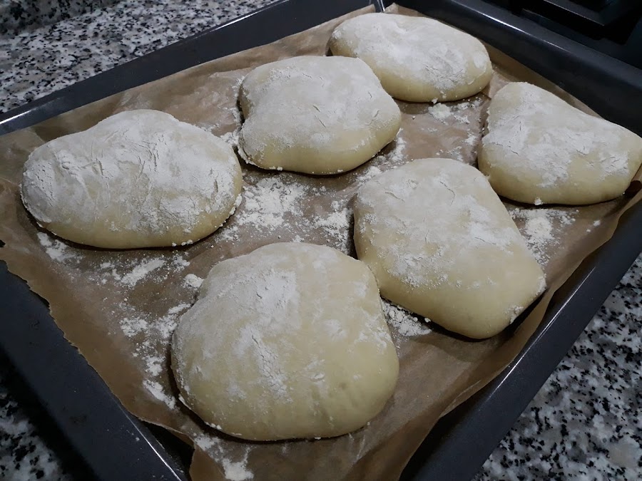 Una vez haya terminado el programa sacamos la masa, la amasamos un poco para quitarle el aire, nos ponemos un poco de aceite en las manos y vamos haciendo bolas con la masa y las aplastamos.