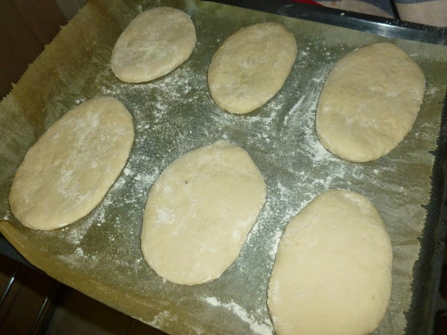 Transcurrido el tiempo de reposo, amasar un poco la masa y dividir en 12 trozos (más o menos 90 g cada uno).