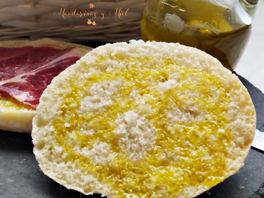Los molletes tienen que quedar blanquitos y poco cocidos. Partido por la mitad, regado con un buen chorrito de aceite de oliva virgen extra y acompañado de un sabroso jamón ibérico.......¡Es toda una delicia!
