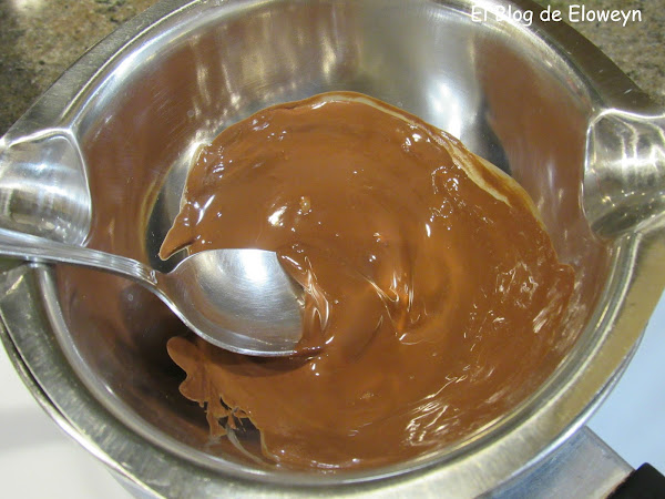 Una vez estén frías, poned a derretir al baño maría los 25 gramos de chocolate negro para fundir. Para los que no sepan qué es el baño maría, tenéis que tener dos cazos: Uno un poco más grande que el otro. En el cazo grande, ponéis a hervir el agua, y en el cazo pequeño ponéis el chocolate.