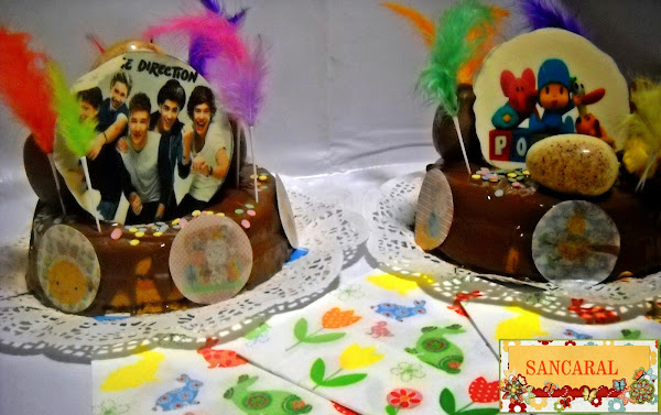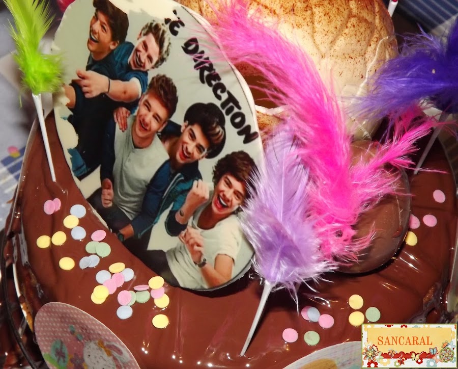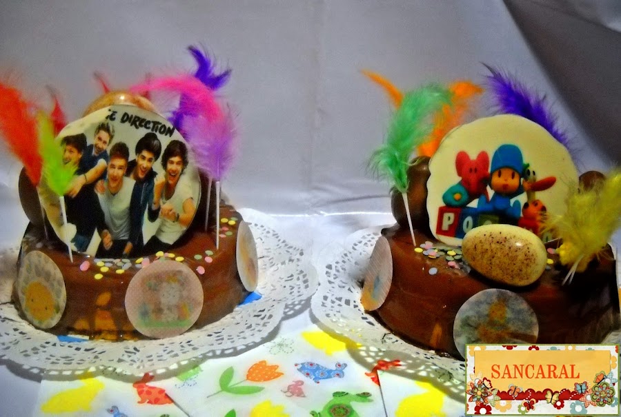 Luego ya vino el despiporre con los huevos, plumas y pollitos jejejejeje también compre en Hojas dulces y + unos chocotransfer de one direction para mi niña y de pocoyo para mi niño....