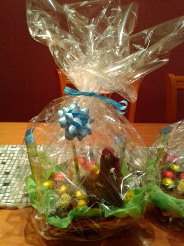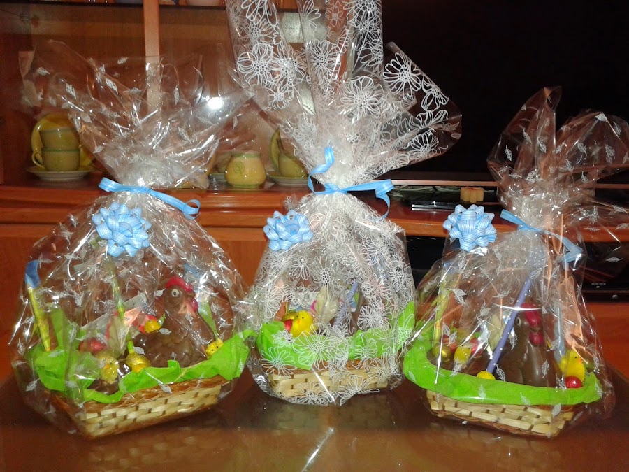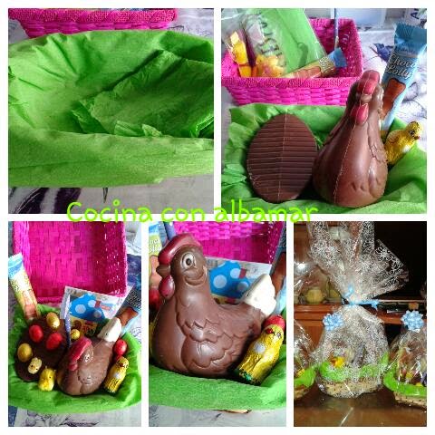 Poned el resto de figuritas de chocolate y los regalos repartidos por la cesta.