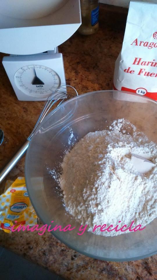 3. Cuando tengamos la masa madre, en un bol ponemos la harina y la levadura mezclándolo bien.