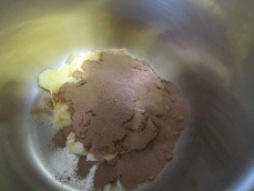 Mezclamos la crema pastelera que nos ha sobrado de cubrir el bizcocho, con 3 cucharadas de chocolate en polvo.