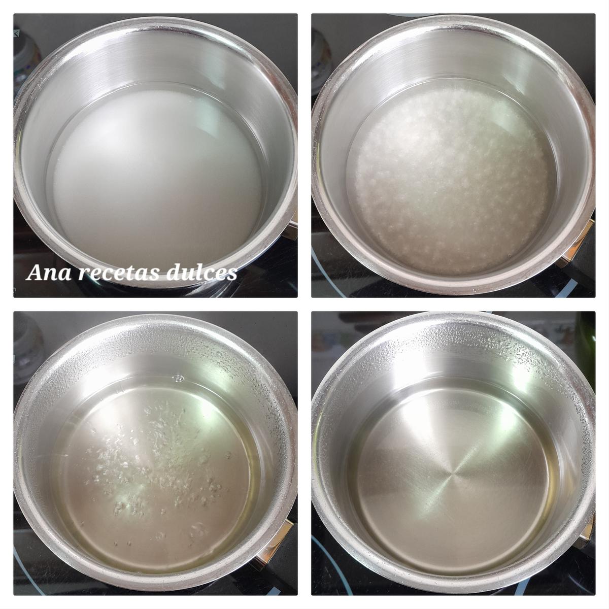 Echamos en un cazo el azúcar, el agua y el anís dulce, ponemos a fuego medio y dejamos desde que empiece a hervir 5 minutos, apartamos del fuego y reservamos.