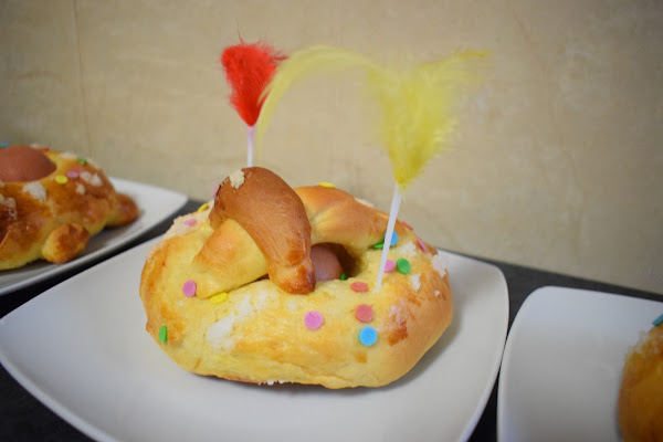 Volvemos ha estar en semana Santa y sin poder hacer gran cosa.Pero... lo que si podemos hacer es esta deliciosa mona de masa brioche con sus huevos cocidos, como se preparaba antiguamente.
