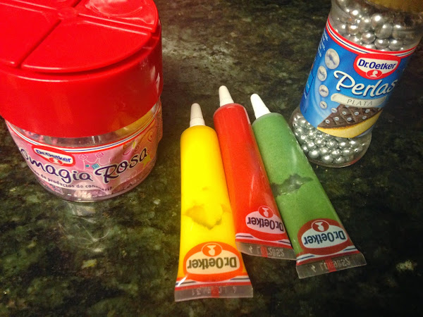 Para terminar pondremos alrededor de la tarta fideos de colores.