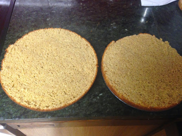 Abriremos el bizcocho por la mitad, lo rellenaremos de crema de mantequilla al chocolate.