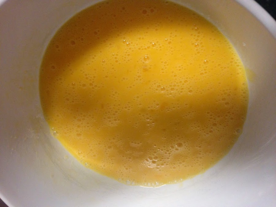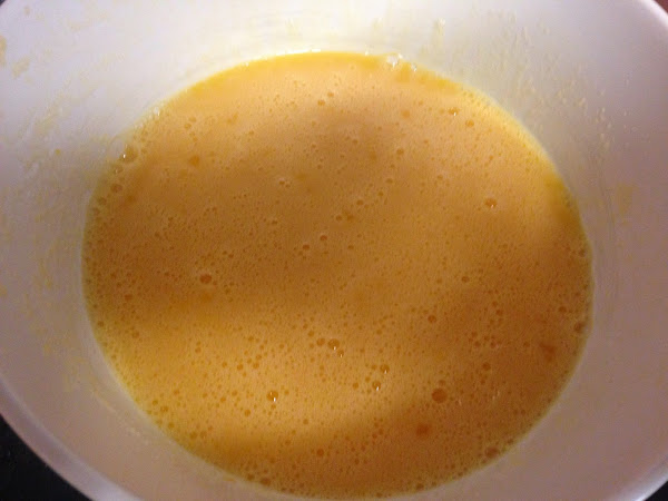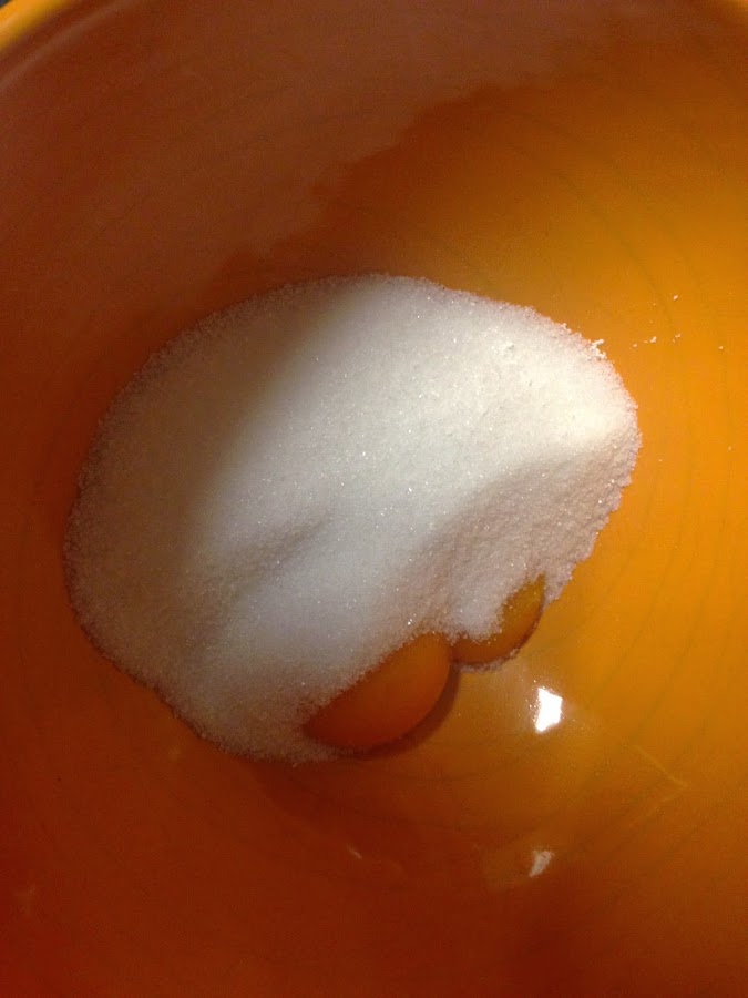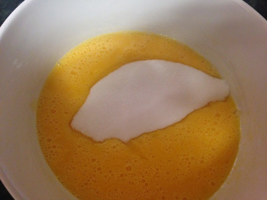 Batiremos con varillas los huevos, añadiremos el azúcar y seguiremos batiendo.