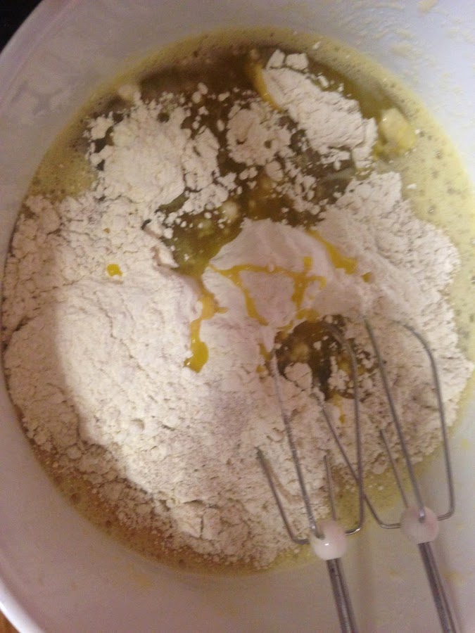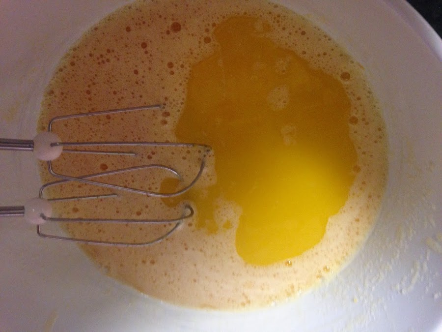 Seguidamente añadiremos la mantequilla fundida, la harina y el aceite de oliva.