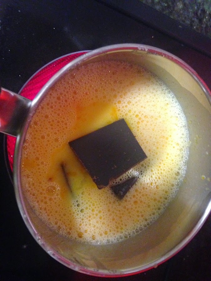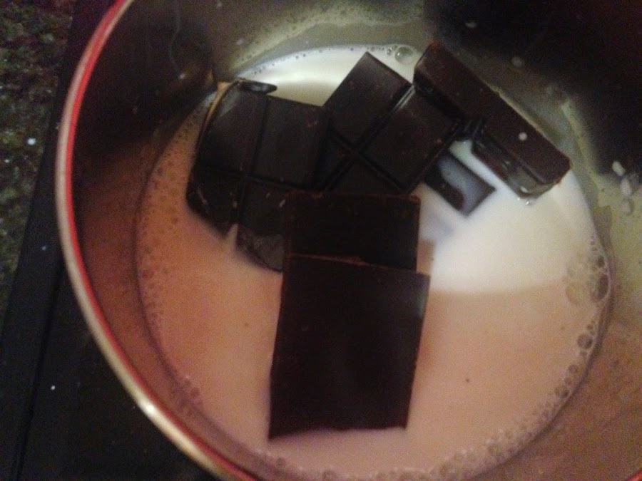 Añadiremos el chocolate la a la mezcla y dejaremos que se funda.