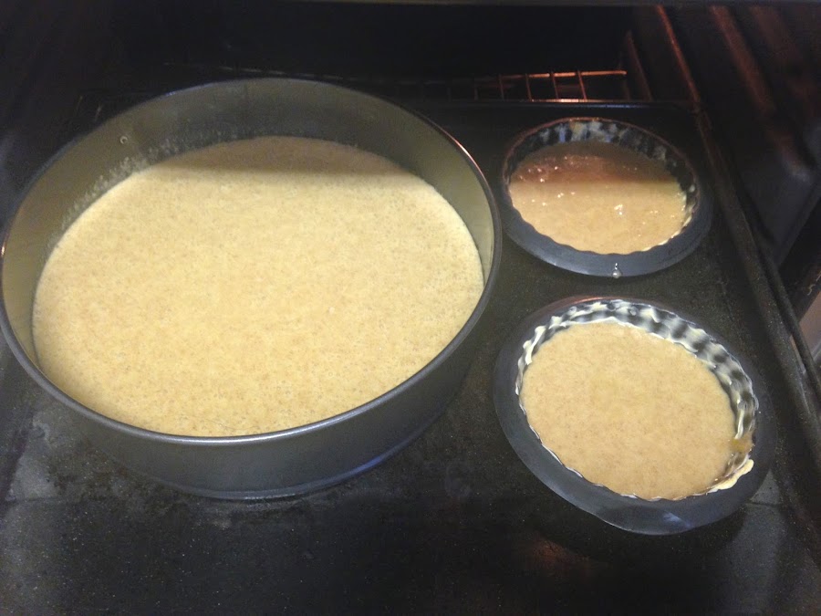 Una vez todo mezclado, untaremos los moldes con mantequilla, vertemos la preparación y los meteremos en el horno a 180ºC.