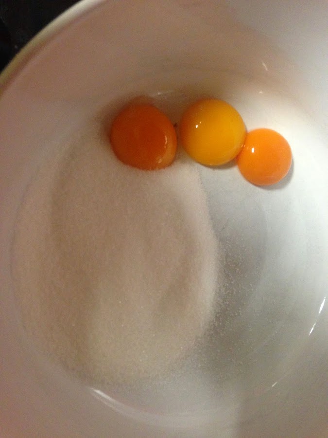 Batiremos muy bien las yemas con la esencia de vainilla y el azúcar.