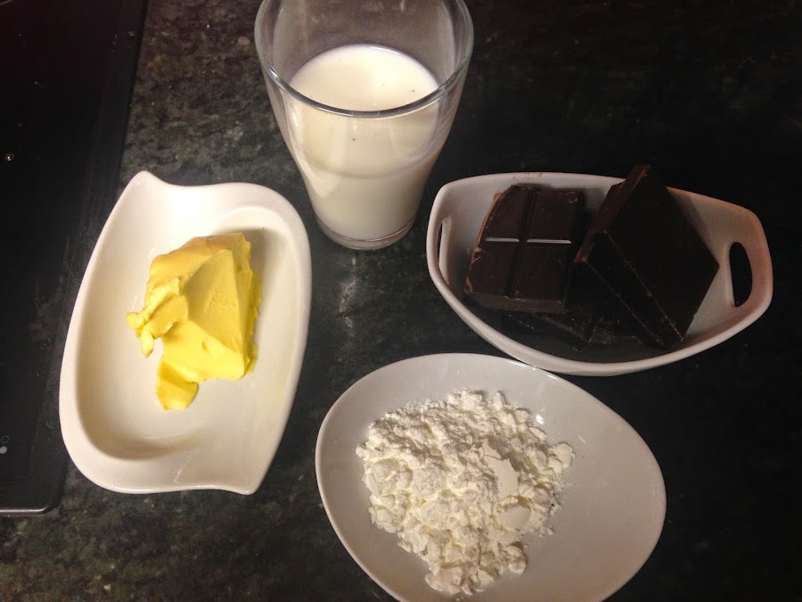 Pondremos en un cazo, la leche, el chocolate, la mantequilla y la maizena, sin dejar de mover continuamente.