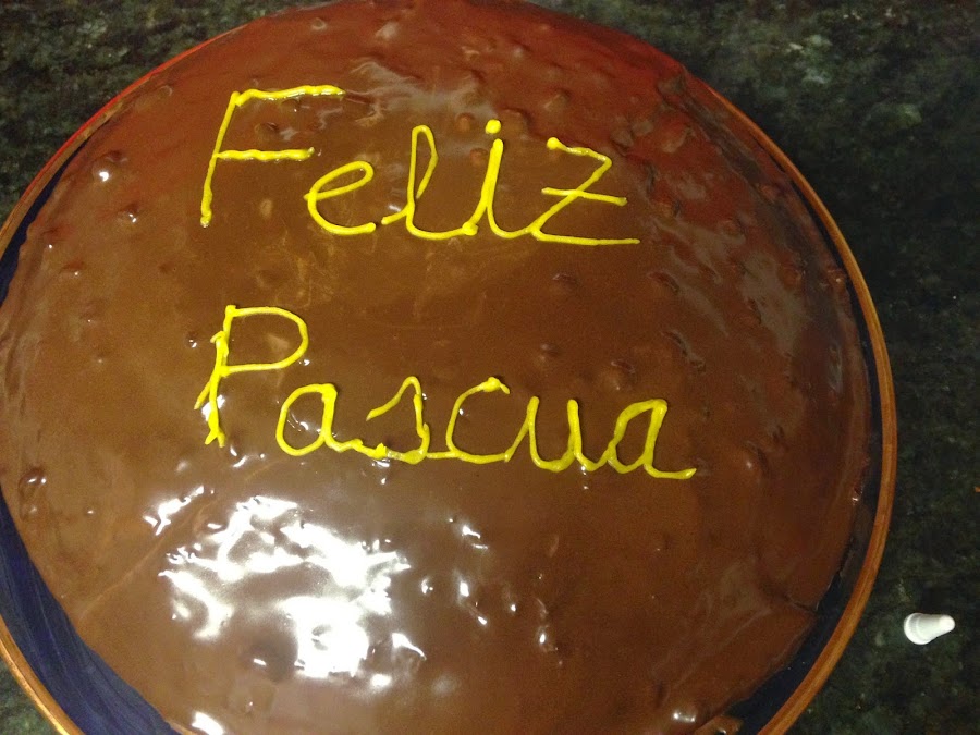 Cogeremos el lápiz amarillo y pintaremos "Feliz Pascua".