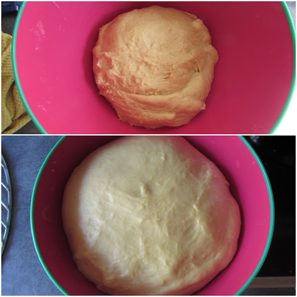 En algunas zonas y panaderías, se infusiona agua con canela y anís. En Orihuela se usa más que nada ralladura de naranja y limón para aromatizar, y van ralladas, no hervidas en agua, pero eso seguro que también depende de la receta. Yo esta vez he pulverizado una pizquita de anís y le he puesto ralladura de naranja y limón, pero la próxima vez probaré a preparar una tisana para aromatizar y usaré una pizca de canela también. Así como la he hecho hoy está tremenda de sabor y de textura, pero mi mona favorita, la de El horno del obispo, tiene unos toques de sabor más complejos que ninguna otra mona que yo haya probado, y quiero seguir experimentando a ver.