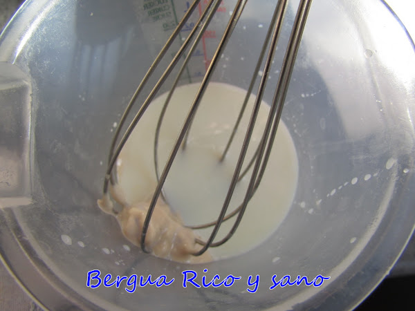 1. Vamos a preparar antes de nada nuestra creciente o masa madre. Esto es fácil y rápido. La leche la templamos un poquitín para que sea más fácil disolver la levadura. Pero que no queme, importante. Disolvemos en ella la levadura fresca y después el azúcar.