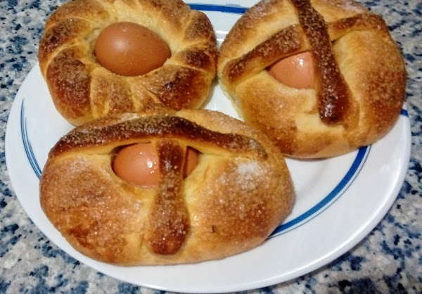 Son como unos bollos suizos con un huevo en el centro.