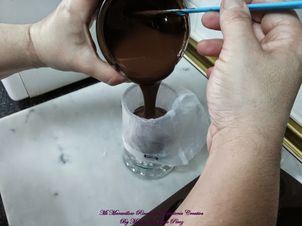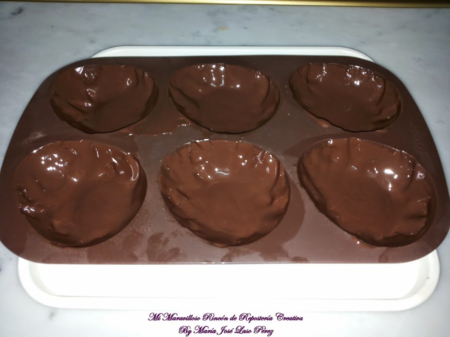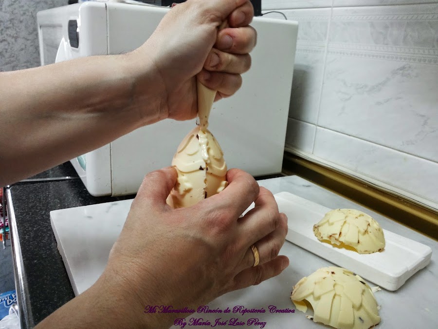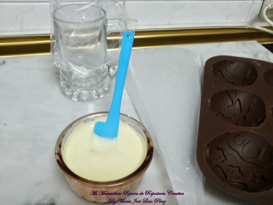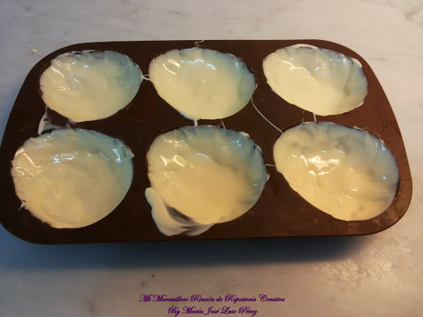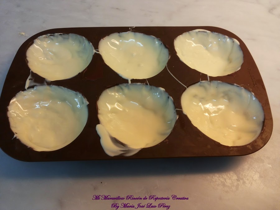 Y bañamos el molde con el chocolate blanco.