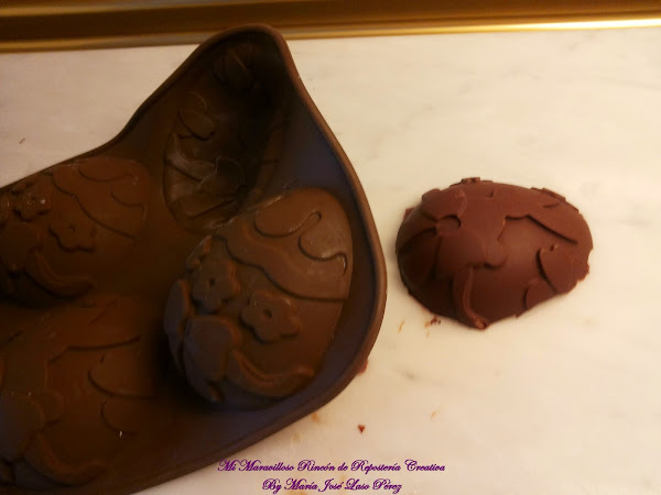Cuando el chocolate se haya endurecido, lo sacamos y desmoldamos con mucho cuidado para que no se partan los huevos.