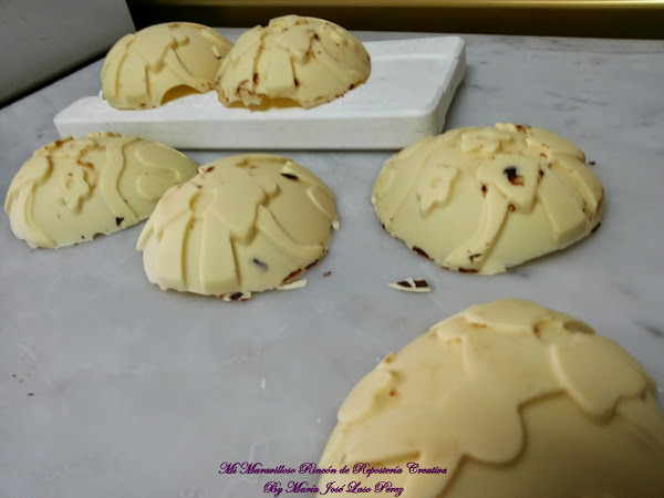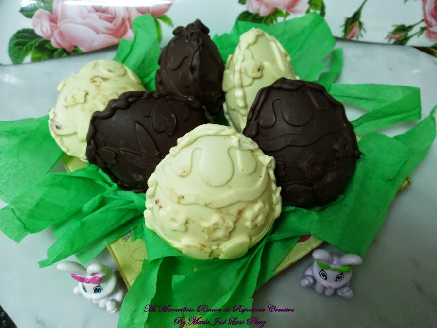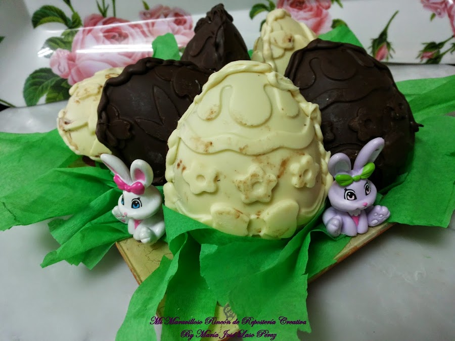 Y ya tenemos terminadas las Monas de chocolate blanco. Si no las vamos a consumir de inmediato, es mejor dejarlas en la nevera.