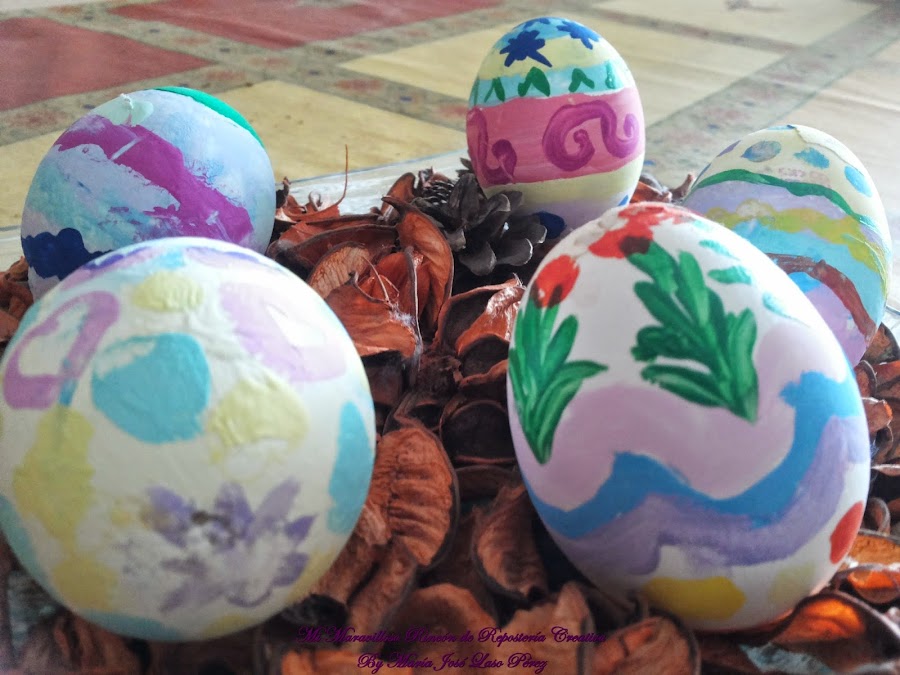 Estos son los cascarones decorados por mis hijos