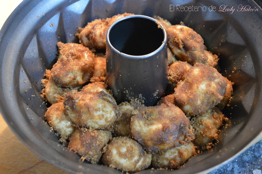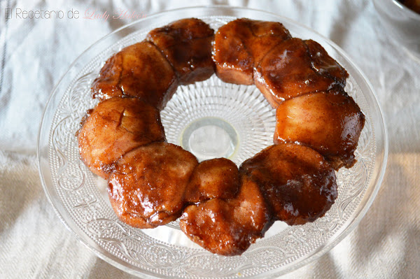 Y claro, cuando vi este Monkey bread me vine arriba y recordé que estaba en mi lista de recetas pendientes desde hacía muchísimo tiempo... No cumplía mucho mis requisitos iniciales, peeeeero es que parecía taaaaan rico... Y tachar una receta de esa lista es muy importante ¿verdad? Aunque fuera sábado por la tarde, a pocas horas de tener que publicarlo y un bizcocho bastante elaborado...