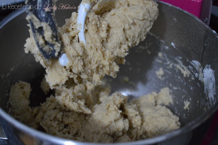 Si utilizas una batidora estilo KitchenAid, puedes comerzar batiendo todos los ingredientes con la ayuda de la pala batidora plana hasta conseguir una masa uniforme.