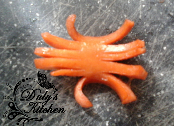 4- Volvemos a cortar por la mitad cada patita sin llegar al final. Si no me entendéis, lo cual entendería, mirad el video al final y ya veréis que simple.