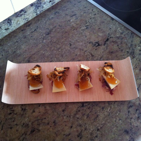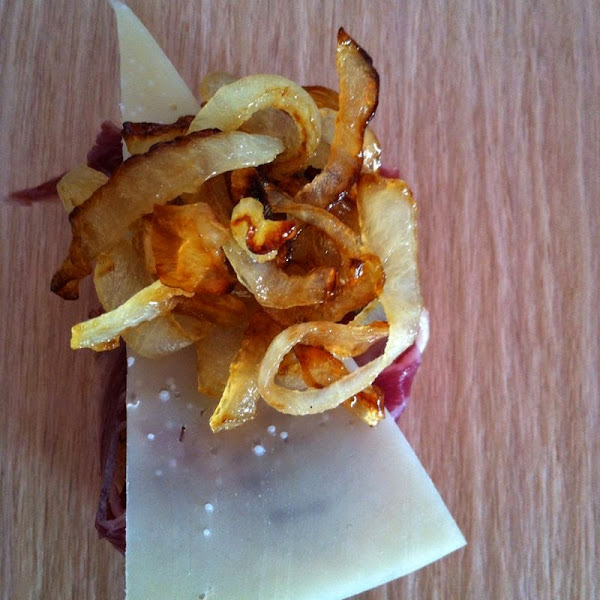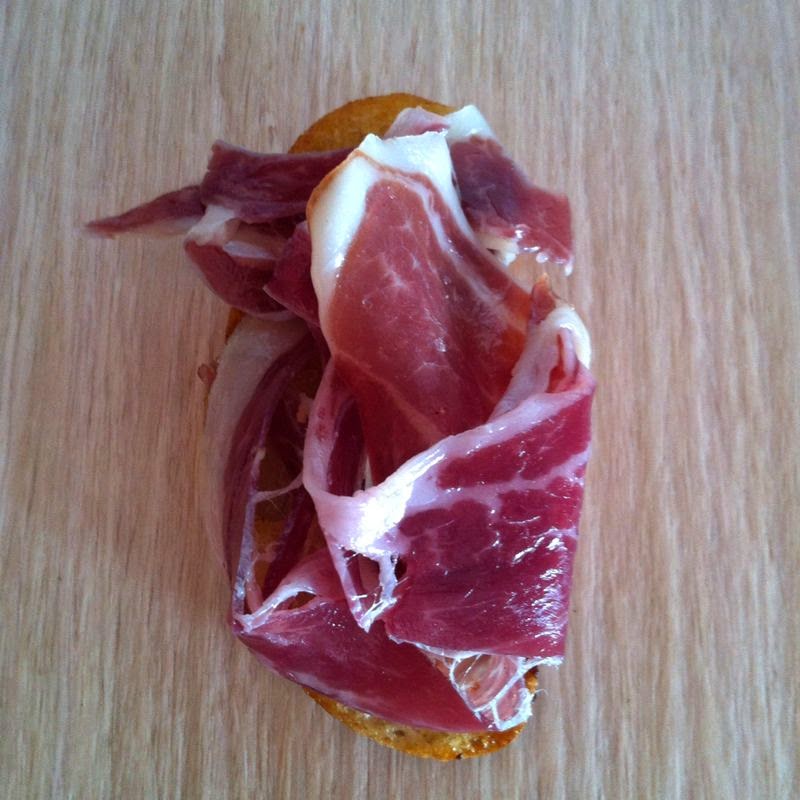 Poniendo una rebanada de pan, y sobre esta, una loncha de paletilla iberica.